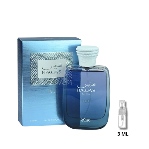 Hawas Ice de Rasasi es una fragancia fresca, aromática y juvenil, perfecta para el día a día, especialmente en climas cálidos.